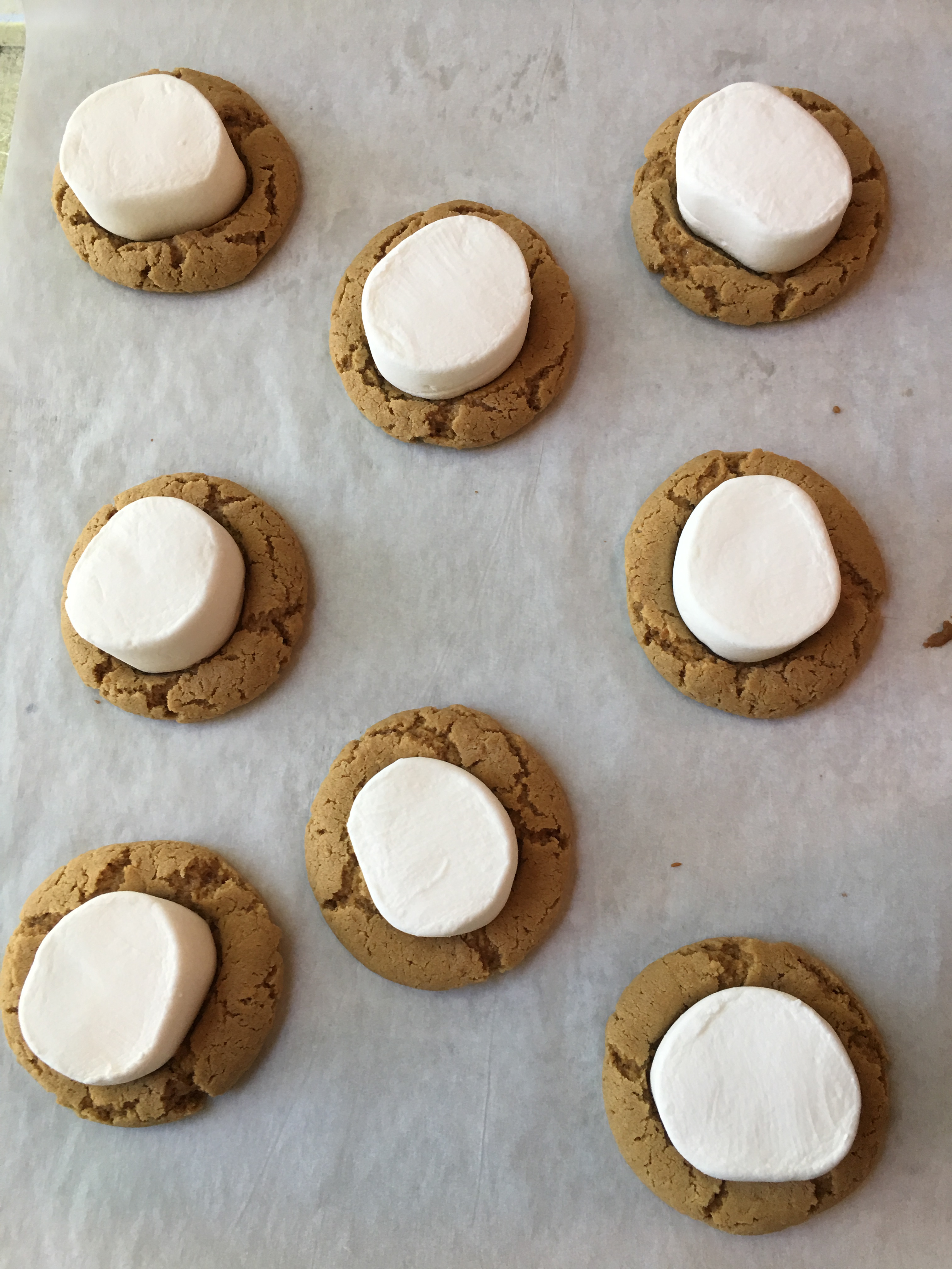 Place the cut half down on the center of each baked cookie.