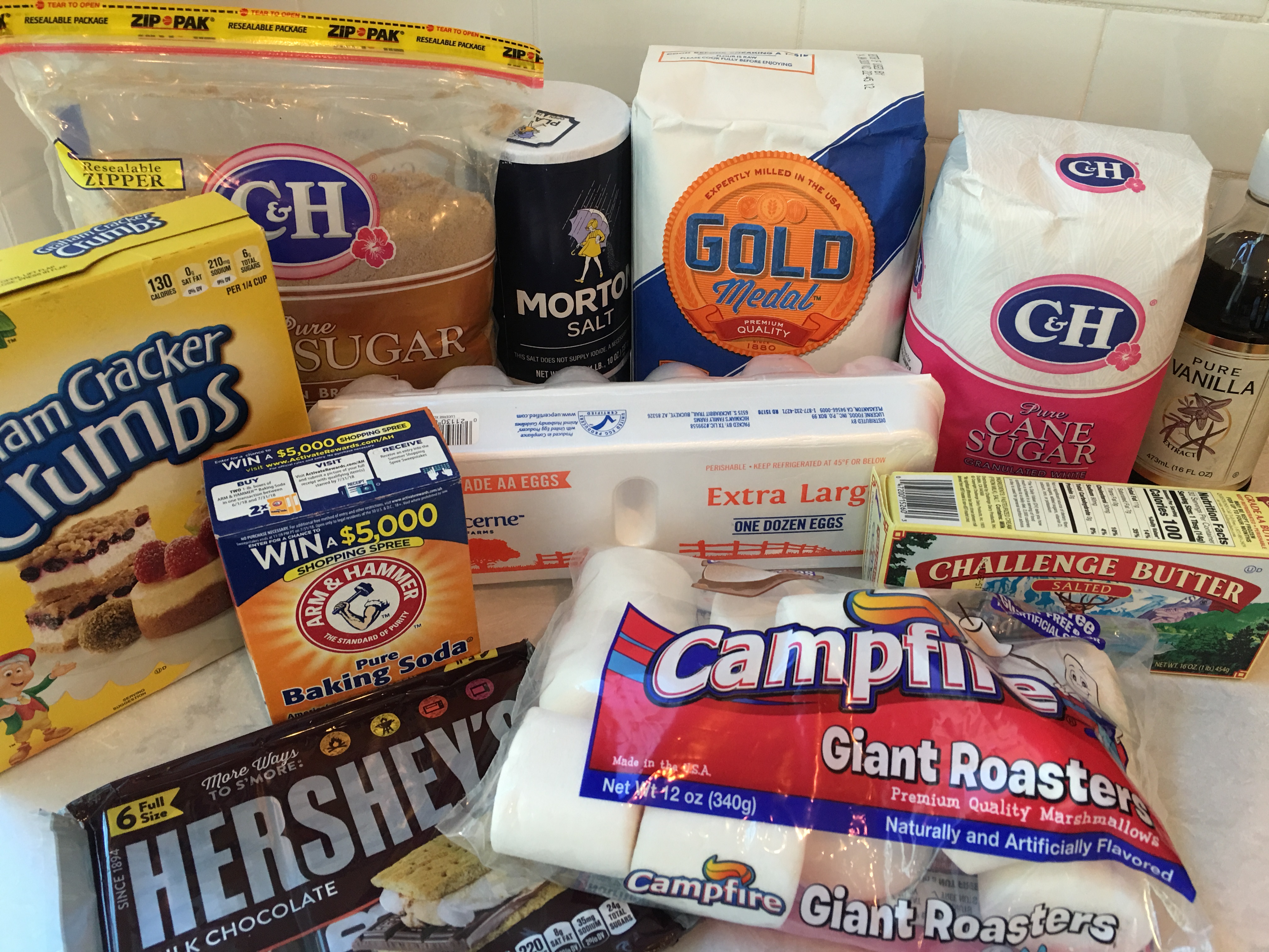 Return to the oven on the Broil setting for just 30 seconds or until tops are toasty. Place 1/4 of a 1.55 oz. Hershey Bar in the center of each toasted marshmallow, slightly pressing down.