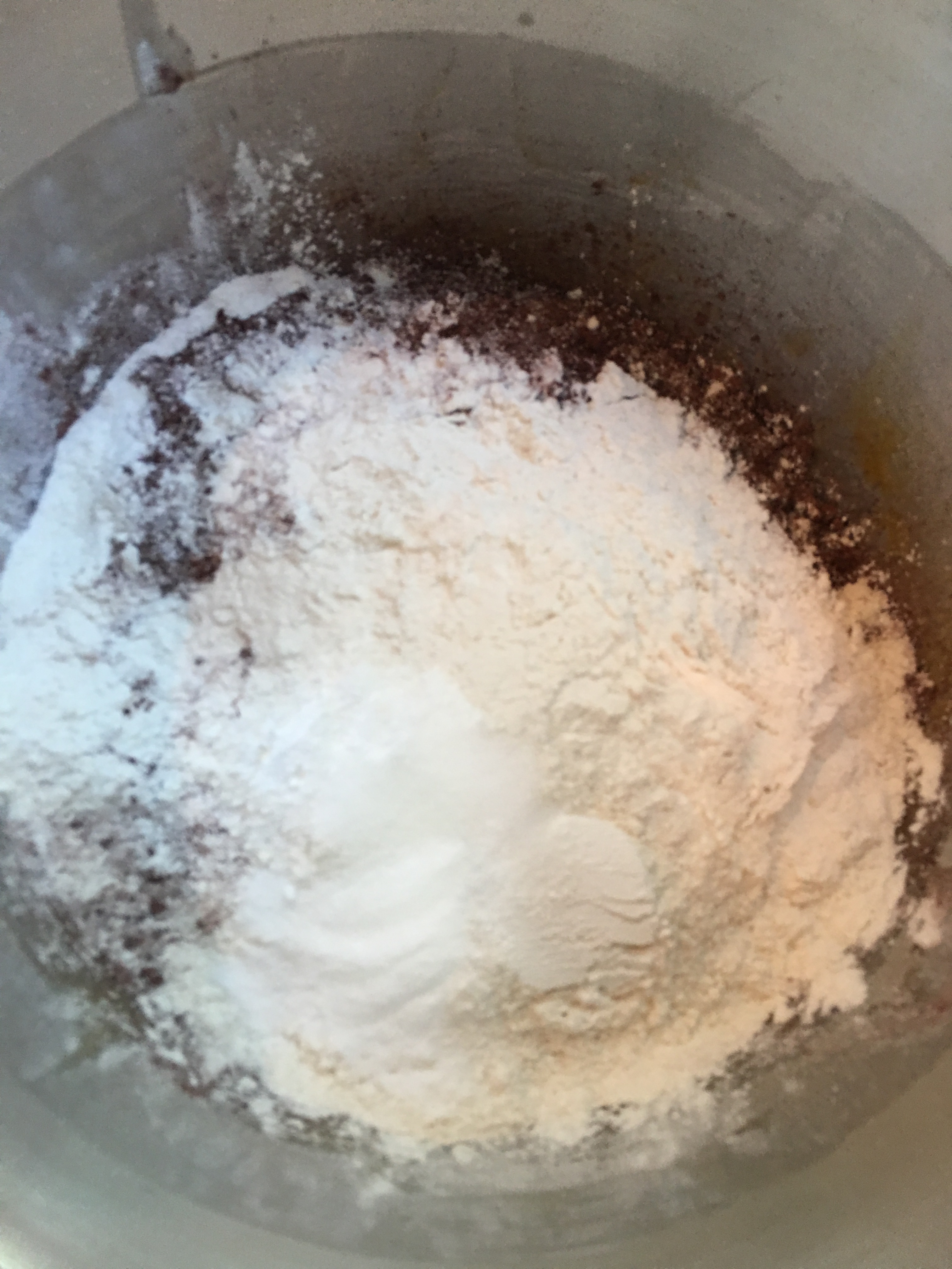 Add all dry ingredients at once, stirring until well incorporated. Add 1-2 additional Tablespoons flour for high elevation.