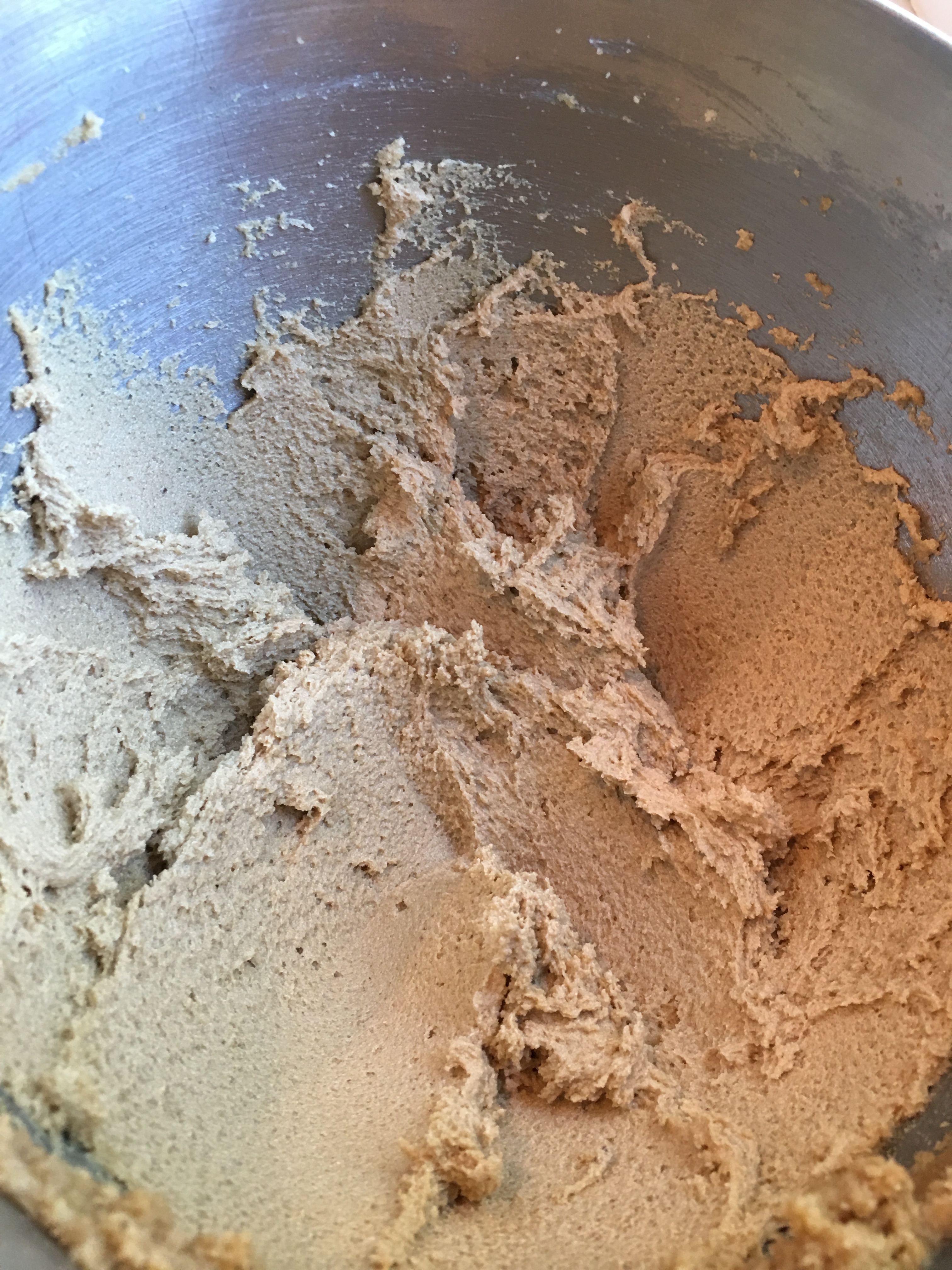 Cream butter, Crisco, and sugars with an electric mixer on medium high for 1 minute or until fluffy.