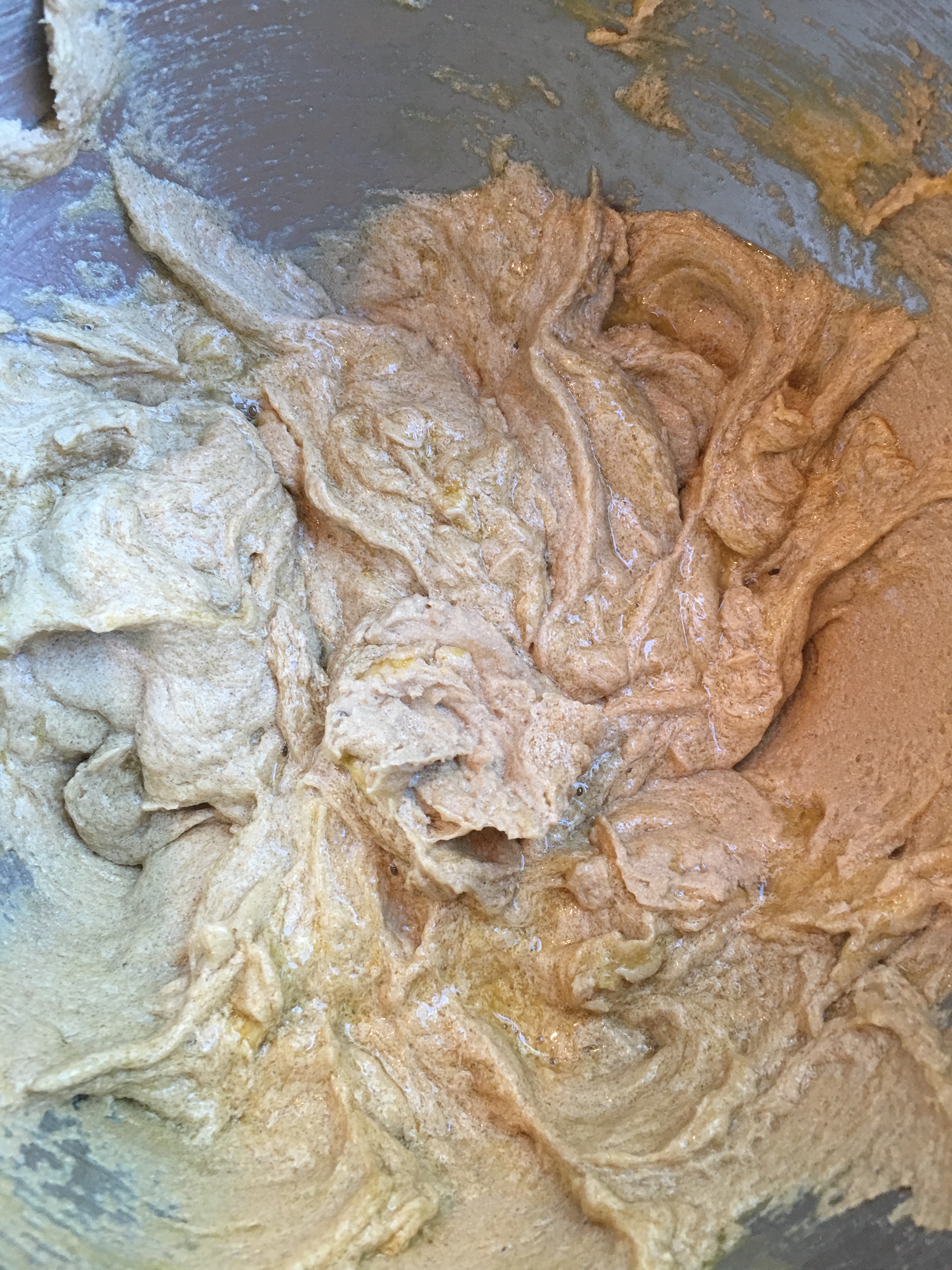Add dry ingredients all at once and mix until fully incorporated. Add 2-3 Tablespoons more flour for high elevation.