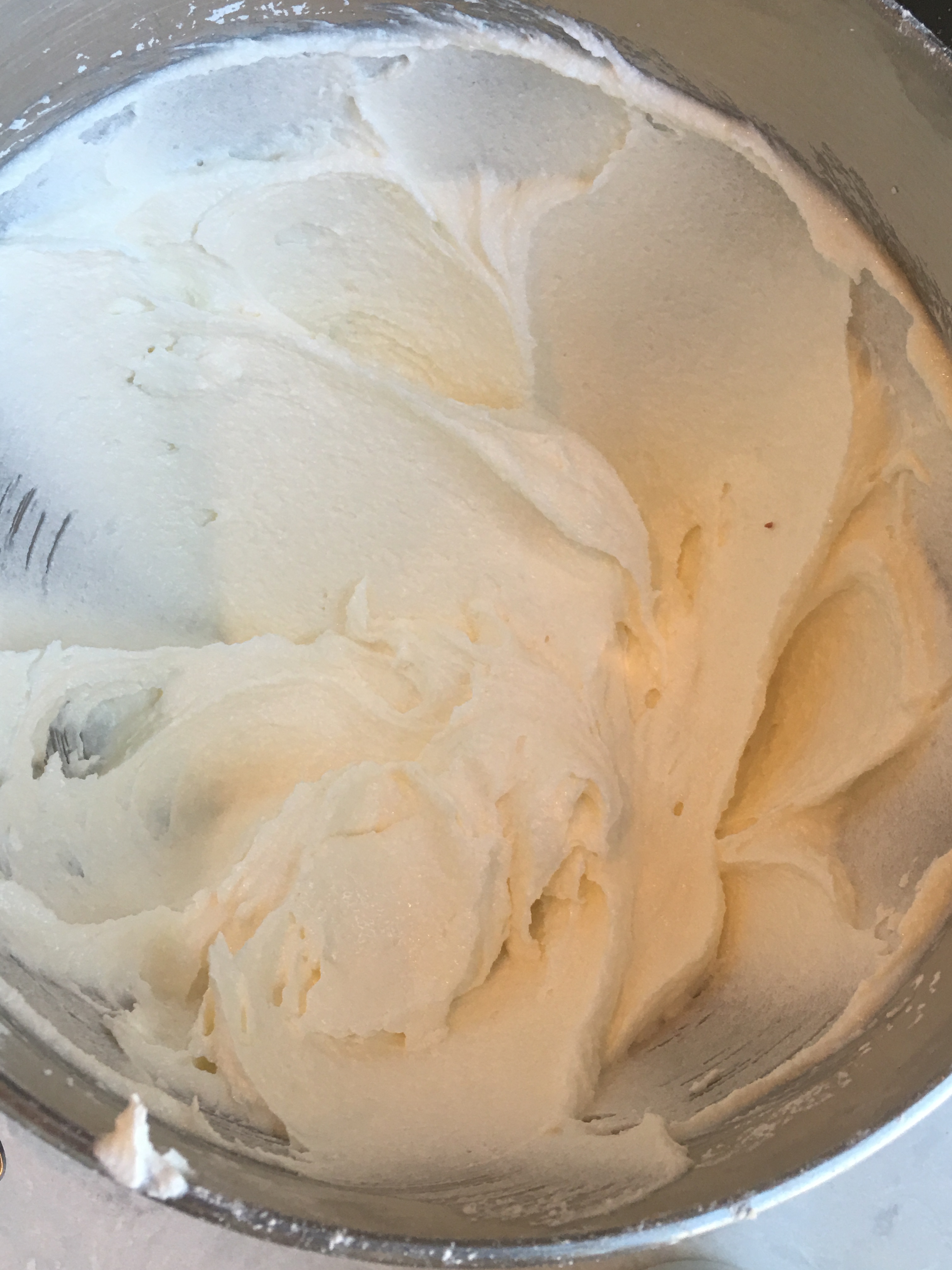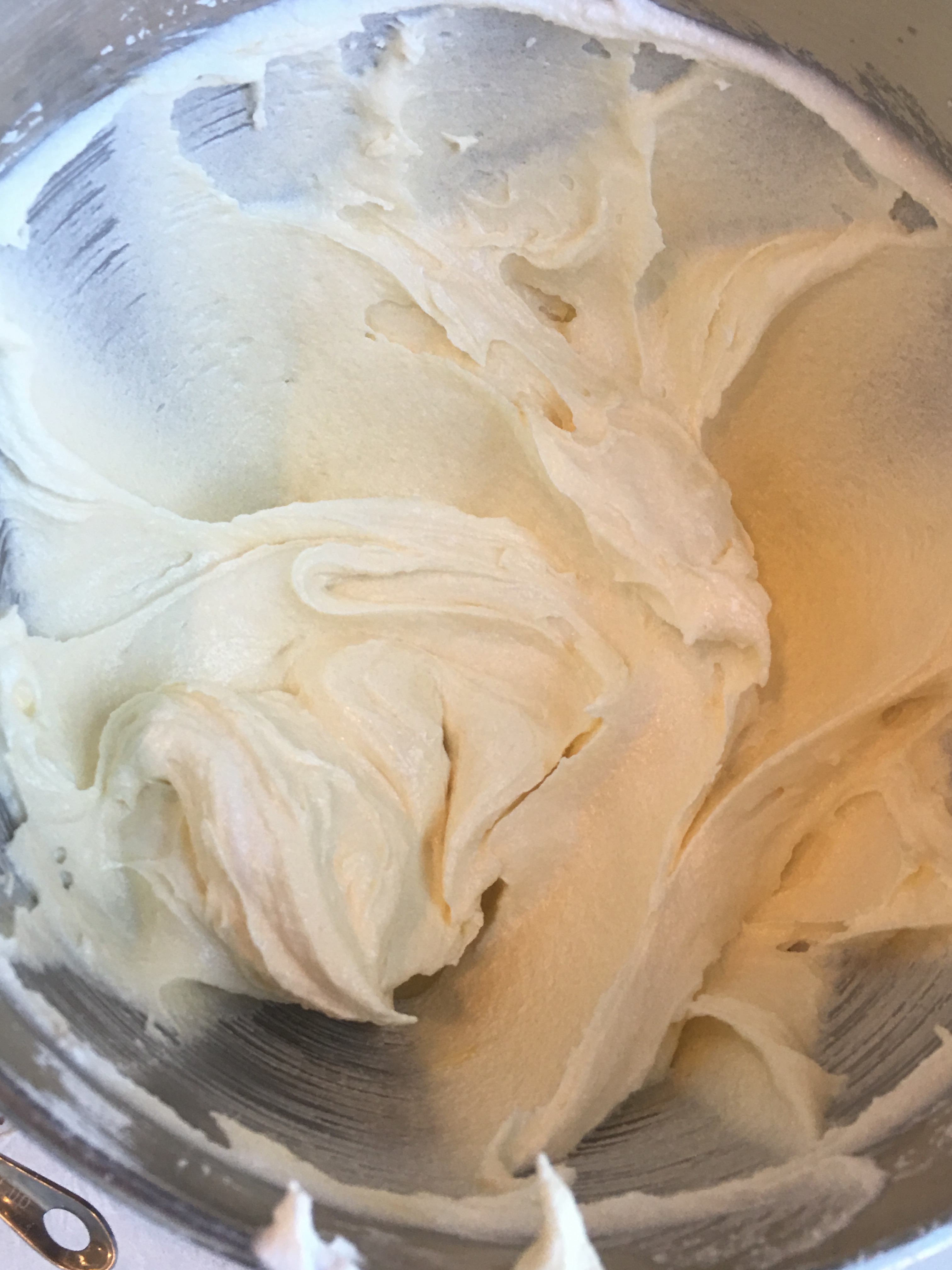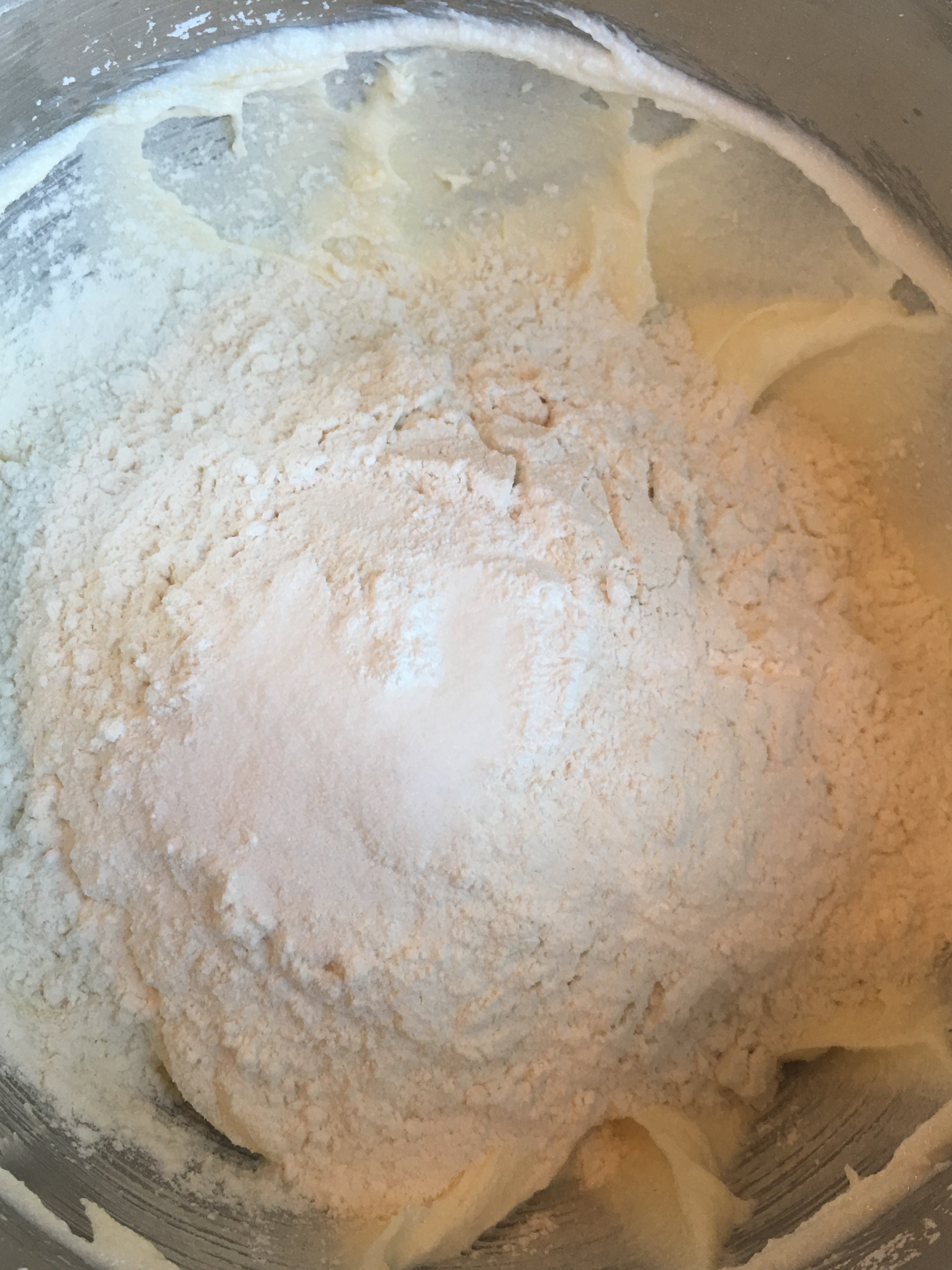 Hand stir in eggs, vanilla and almond extract; don’t overmix.