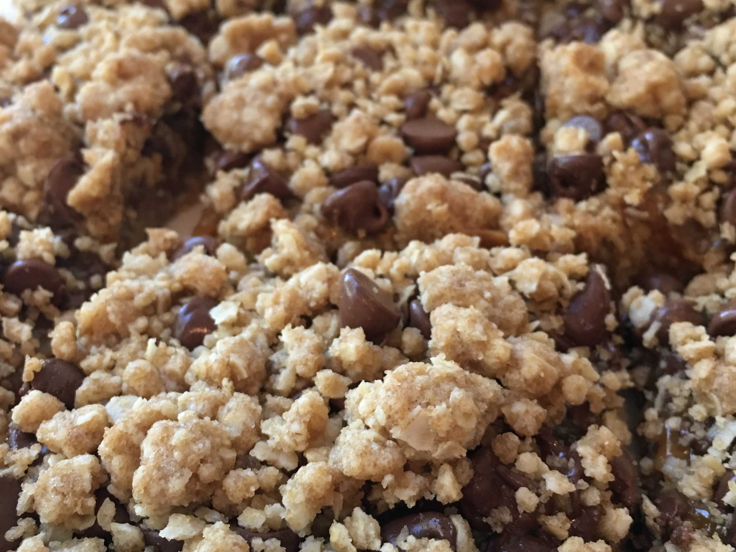 Sprinkle remaining oat mixture over the top and return to the oven for 18 more minutes. Let set. Share!